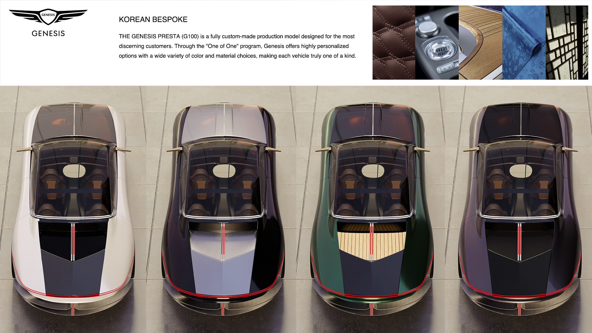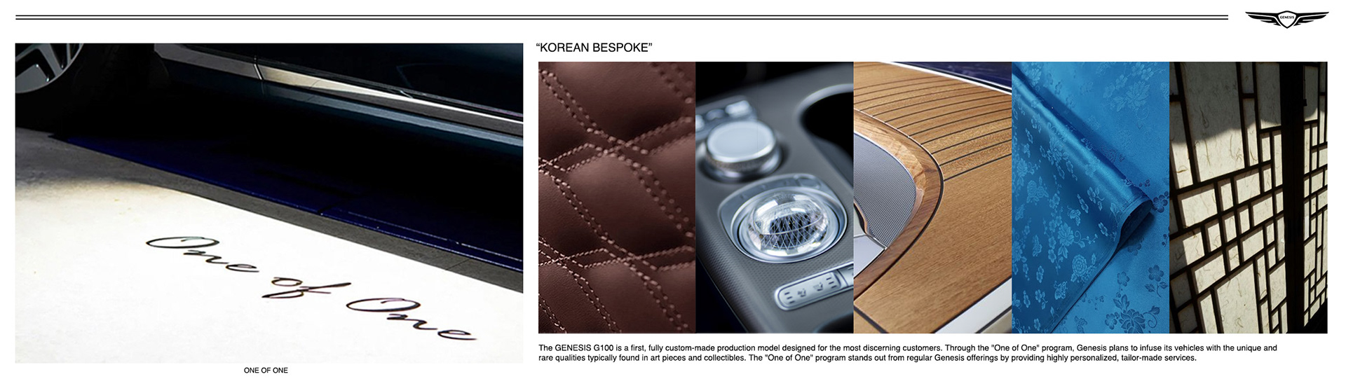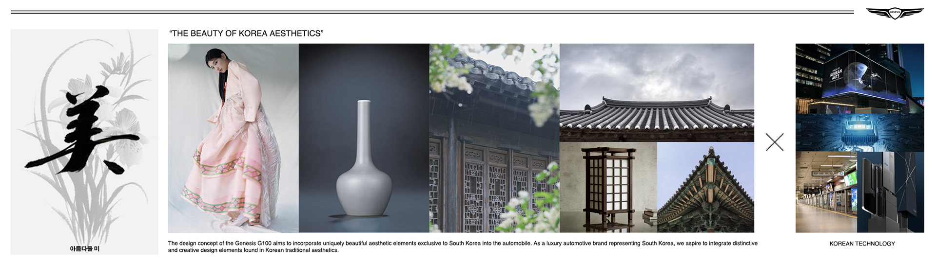 the genesis presta (G100) aims to incorporate beautiful aesthetic elements from south korea into the automobile, as a luxury automotive brand representing south korea.